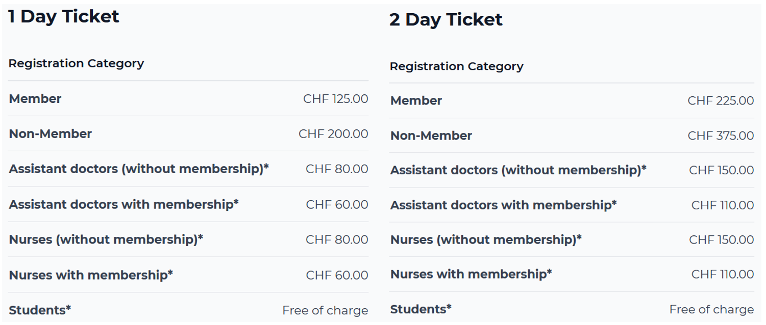 Als SGPO-Mitglied profitieren Sie von reduzierten Teilnahmegebühren für die Fachtagung. Wählen Sie dazu die Fachgesellschaft "SSPO" aus um als SGPO-Mitglied von den reduzierten Teilnahmegebühren zu profitieren.