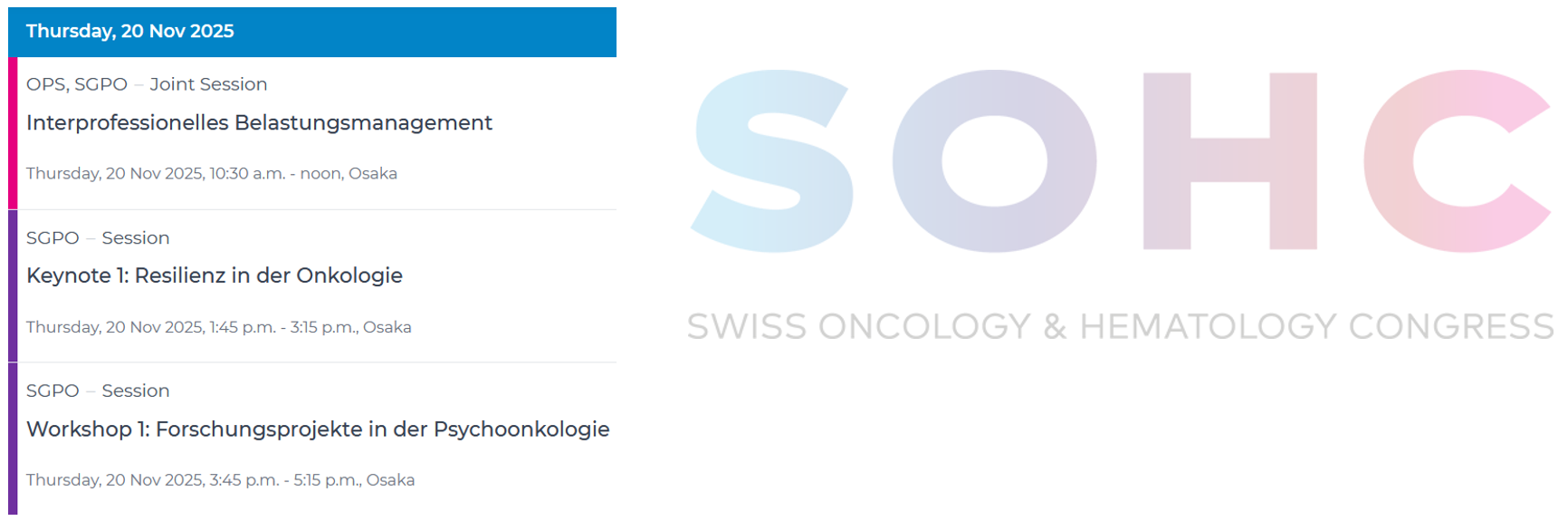Die 21. Fachtagung Psychoonkologie der SGPO wird in diesem Jahr im Rahmen des Swiss Oncology & Hematology Congress (SOHC) in Basel stattfinden.