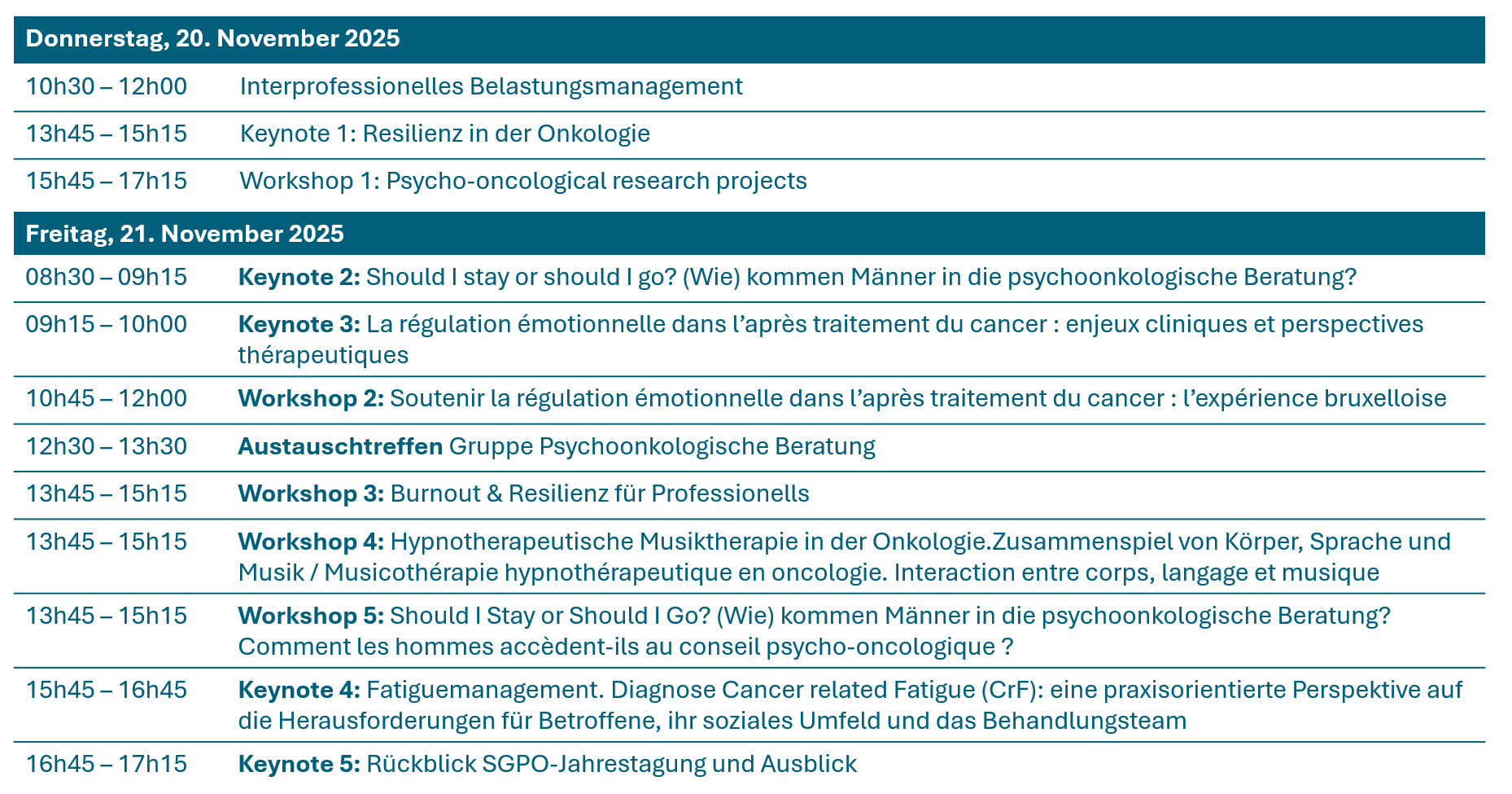 21. Schweizer Fachtagung Psychoonkologie: 20. und 21. November 2025, Basel